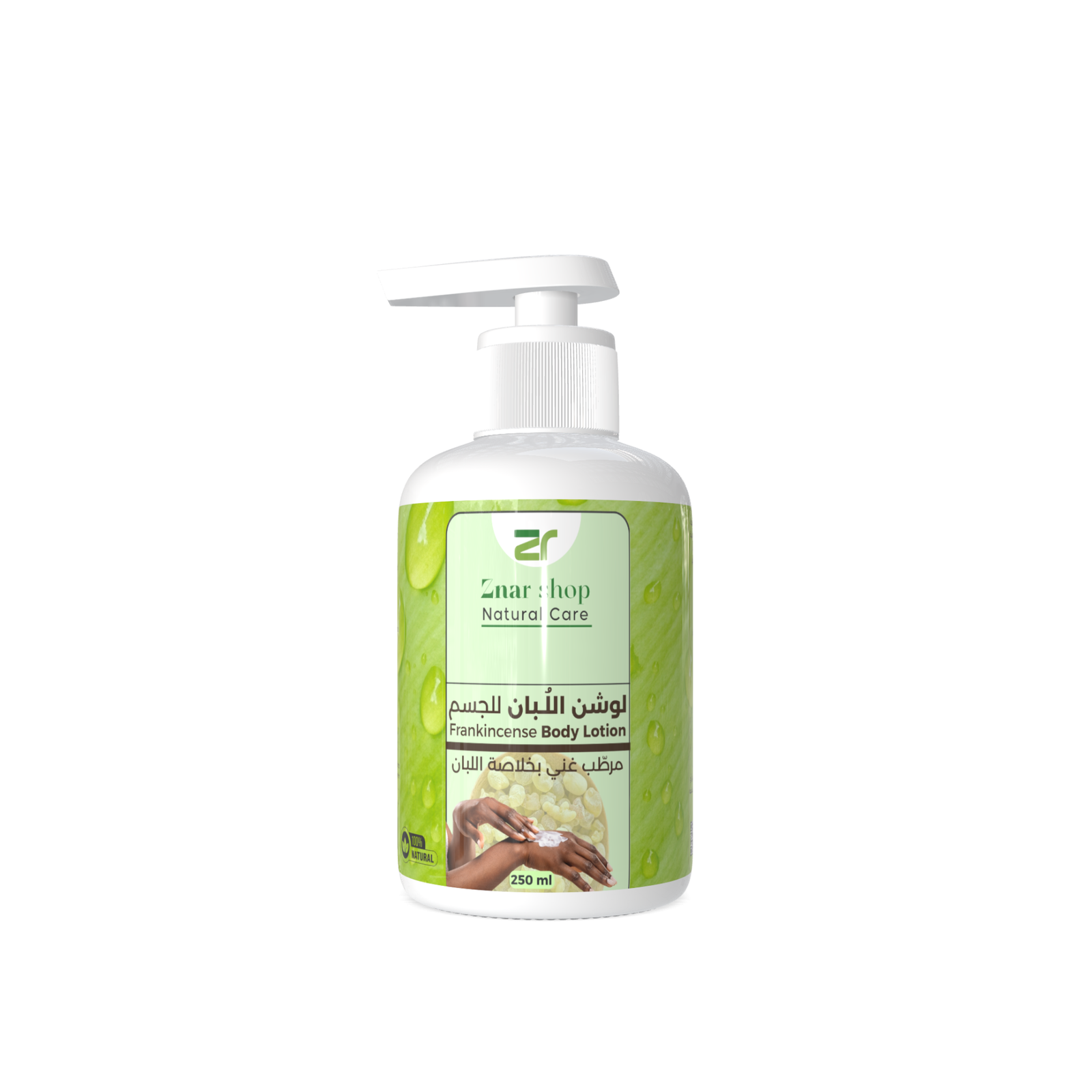 لوشن طبيعي بخلاصة اللبان، يساعد على ترطيب الجسم ومنح البشرة نعومة وراحة يومية.